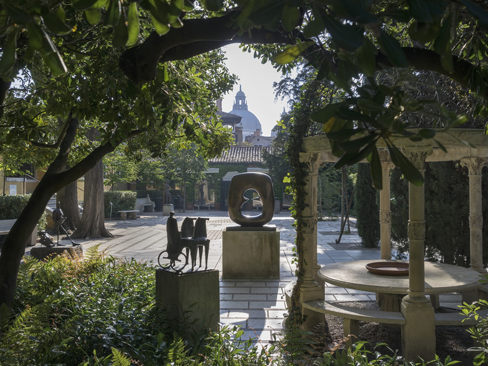 In 1949 Peggy Guggenheim settled in Venice, and bought the unfinished Palazzo Venier dei Leoni, along the Grand Canal. The building, started in 1749, was originally intended as a four-storey palace, yet it never rose beyond the ground floor. Peggy transferred her entire collection there, and since 1951 Peggy’s house and garden were opened to the public. She lived there for the rest of her life, and exhibited her art collection embracing all the major movements which have transformed the very concept of art. She continued buying contemporary art until her death in December 1979. The garden, a setting for sculptures by Arp, Moore, Giacometti, Ernst and other, is where Peggy is buried with her beloved dogs.